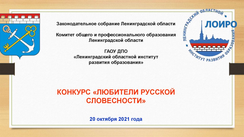 Законодательное собрание Ленинградской областиКомитет общего и профессионального образования