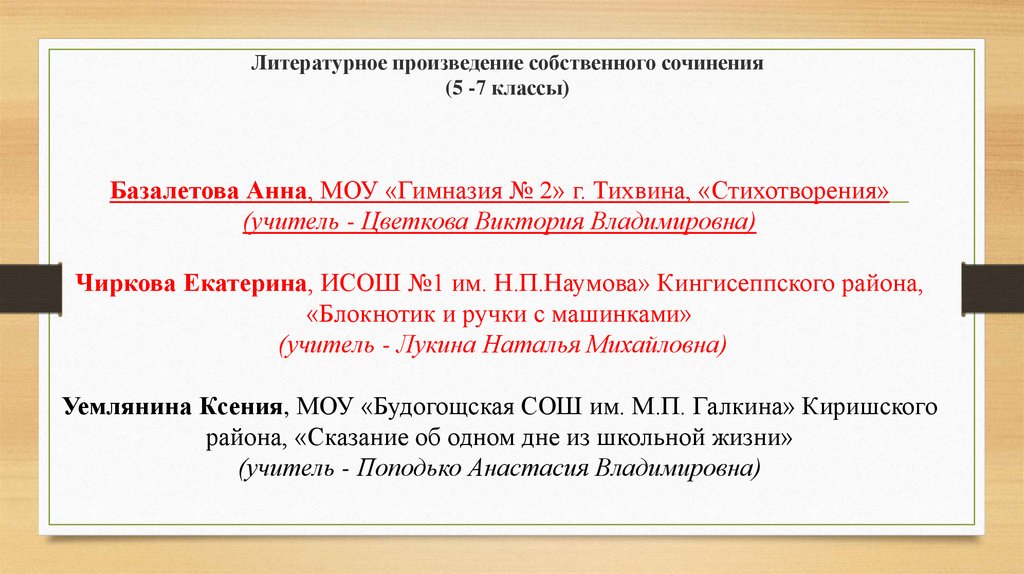 Базалетова Анна, МОУ «Гимназия № 2» г. Тихвина, «Стихотворения»