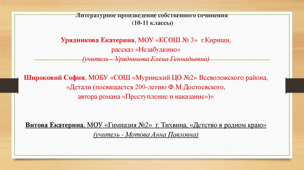Широковий София, МОБУ «СОШ «Муринский ЦО №2» Всеволожского района,