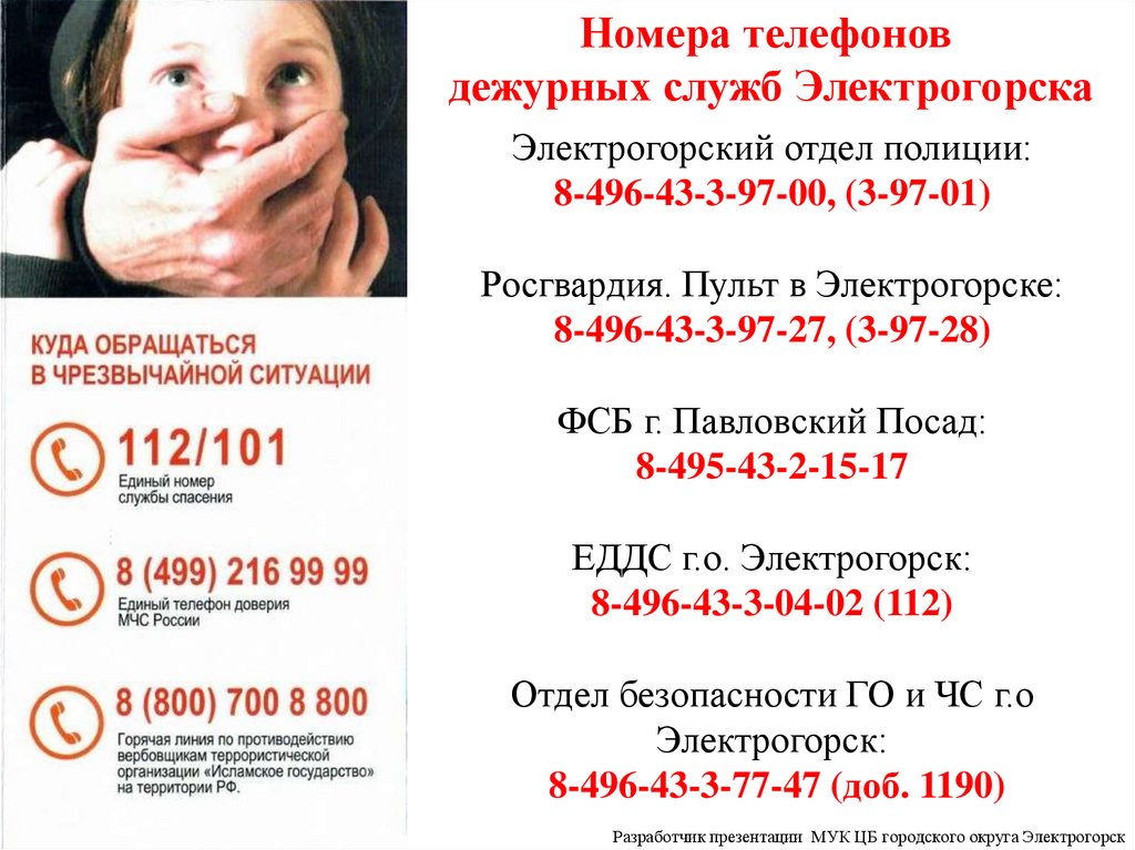 Номера телефоновдежурных служб Электрогорска
