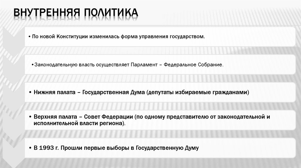 ВНУТРЕННЯЯ ПОЛИТИКА•По новой Конституции изменилась форма управления государством.