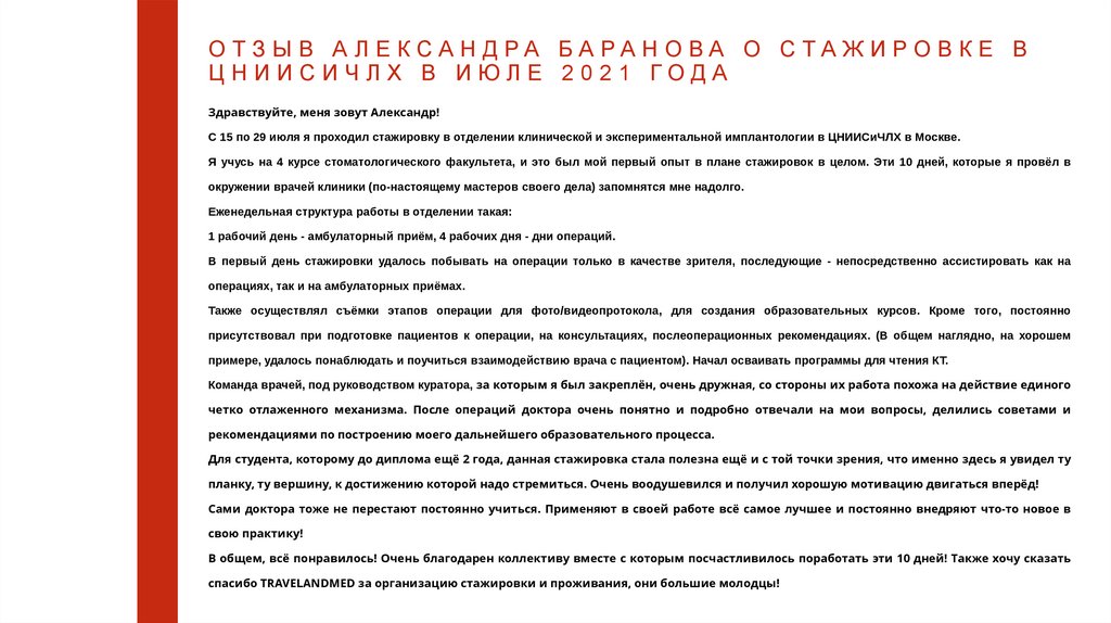 ОТЗЫ В А ЛЕКСАНДРА БАРАН ОВА О СТАЖИРОВКЕ ВЦНИИСИЧЛХ В ИЮЛЕ 2021 ГОДА