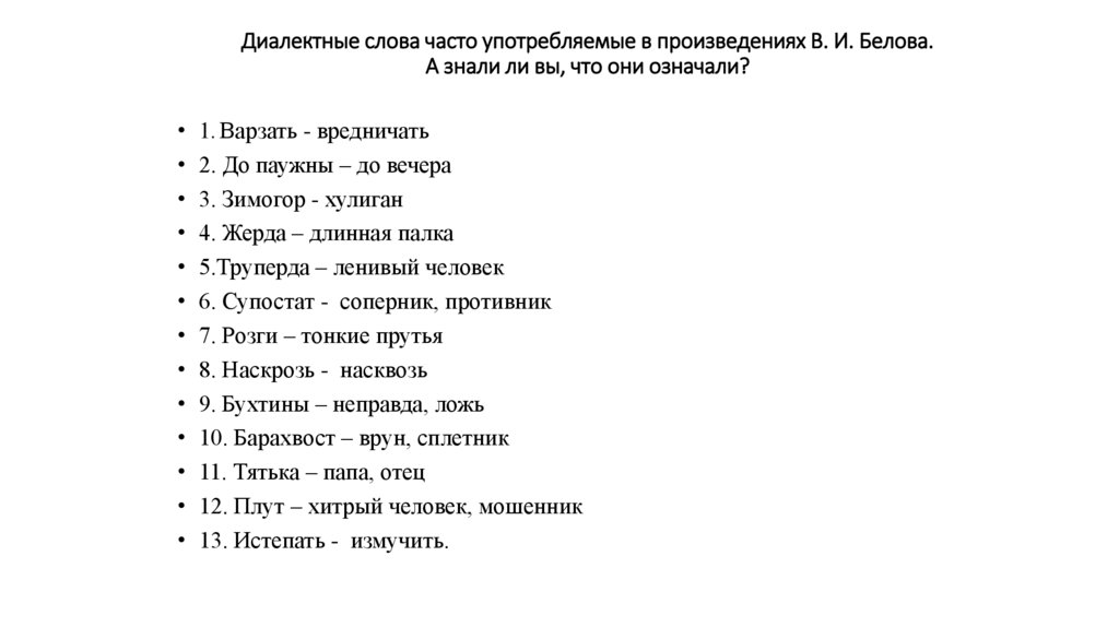 Диалектные слова часто употребляемые в произведениях В. И. Белова.А знали ли вы, что они означали?