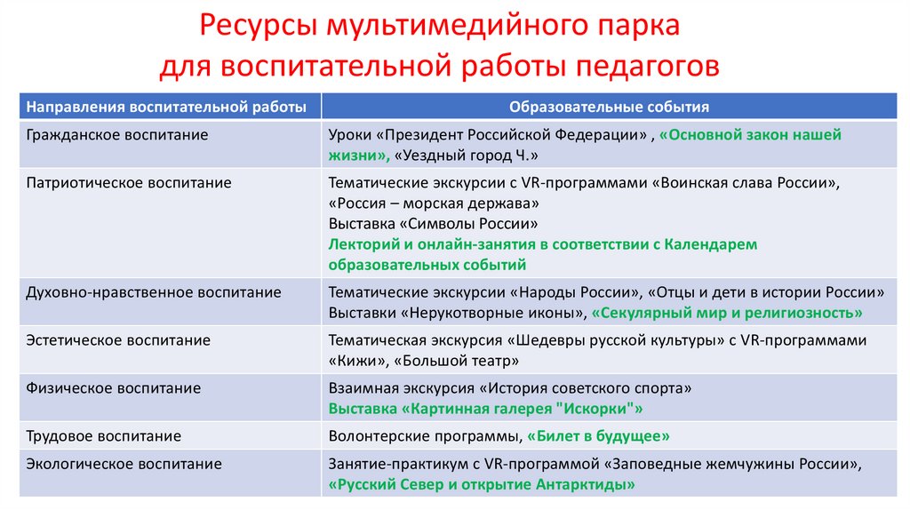 Ресурсы мультимедийного паркадля воспитательной работы педагогов