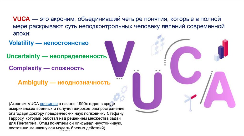 (Акроним VUCA появился в начале 1990х годов в среде