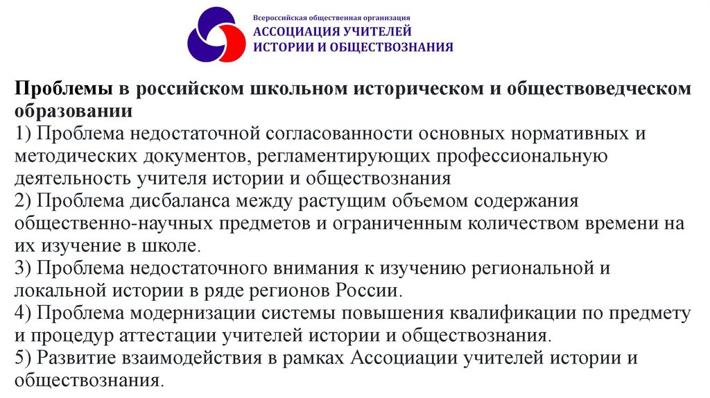 Проблемы в российском школьном историческом и обществоведческомобразовании