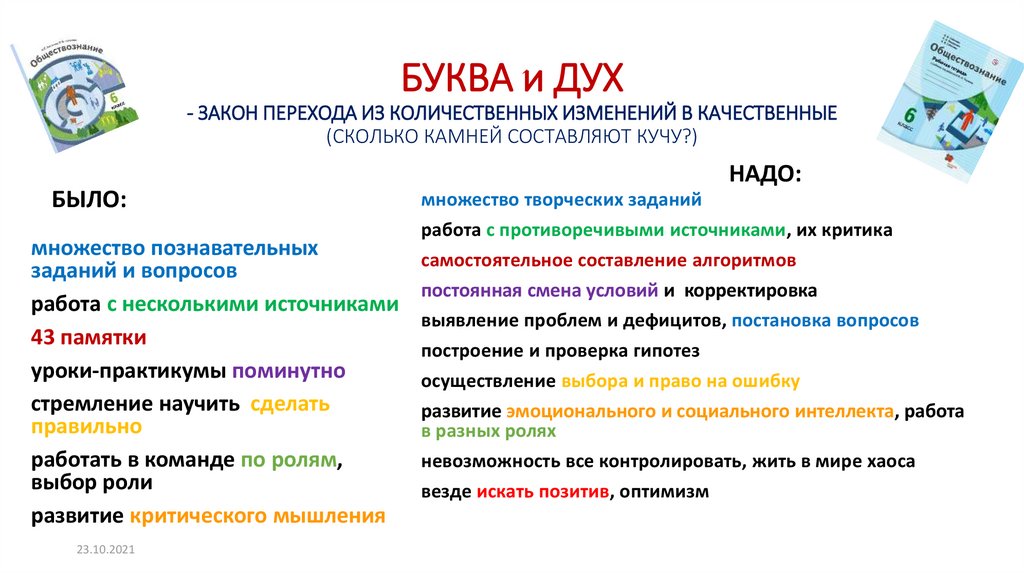 БУКВА и ДУХ- ЗАКОН ПЕРЕХОДА ИЗ КОЛИЧЕСТВЕННЫХ ИЗМЕНЕНИЙ В КАЧЕСТВЕННЫЕ