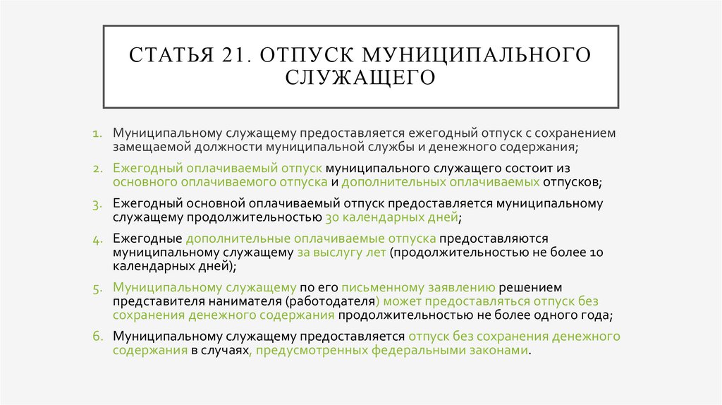 СТАТЬЯ 21. ОТПУСК МУНИЦИПАЛЬНОГОСЛУЖАЩЕГО