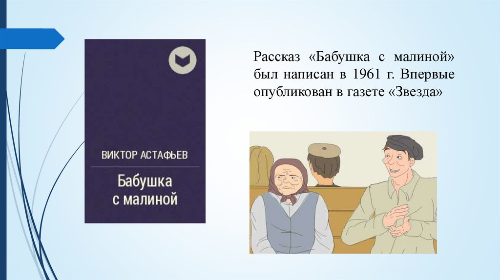 Рассказ «Бабушка с малиной»был написан в 1961 г. Впервые