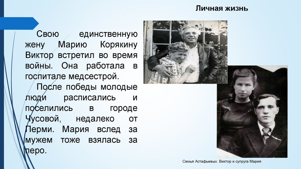 Семья Астафьевых. Виктор и супруга Мария