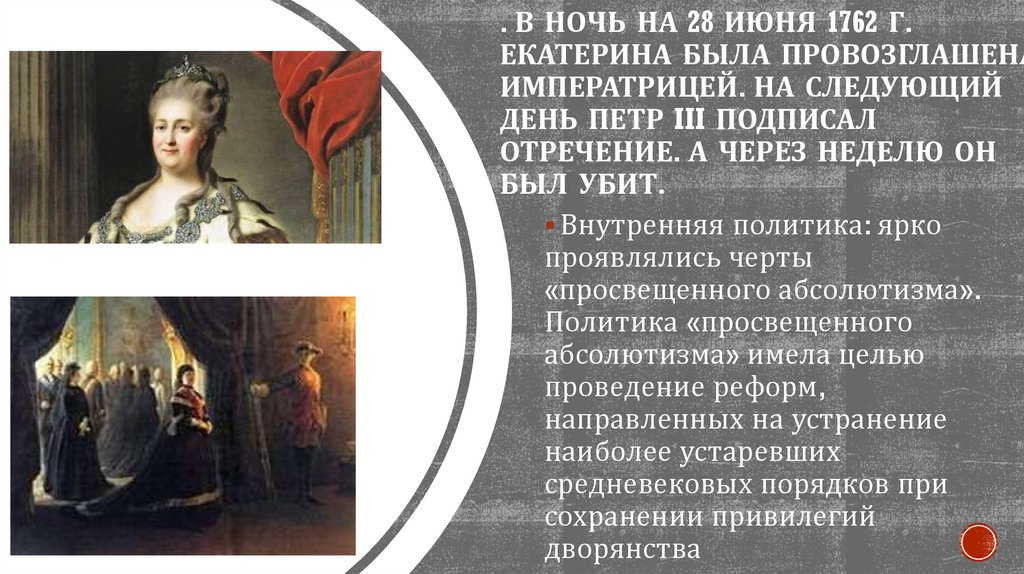. В НОЧЬ НА 28 ИЮНЯ 1762 Г.ЕКАТЕРИНА БЫЛА ПРОВОЗГЛАШЕНА