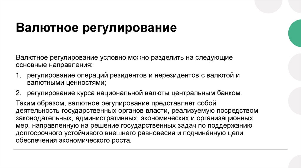 1. регулирование операций резидентов и нерезидентов с валютой и