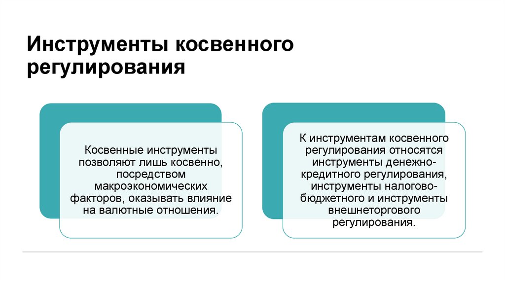 Рыночные инструментыК рыночным инструментам валютного регулирования относят: