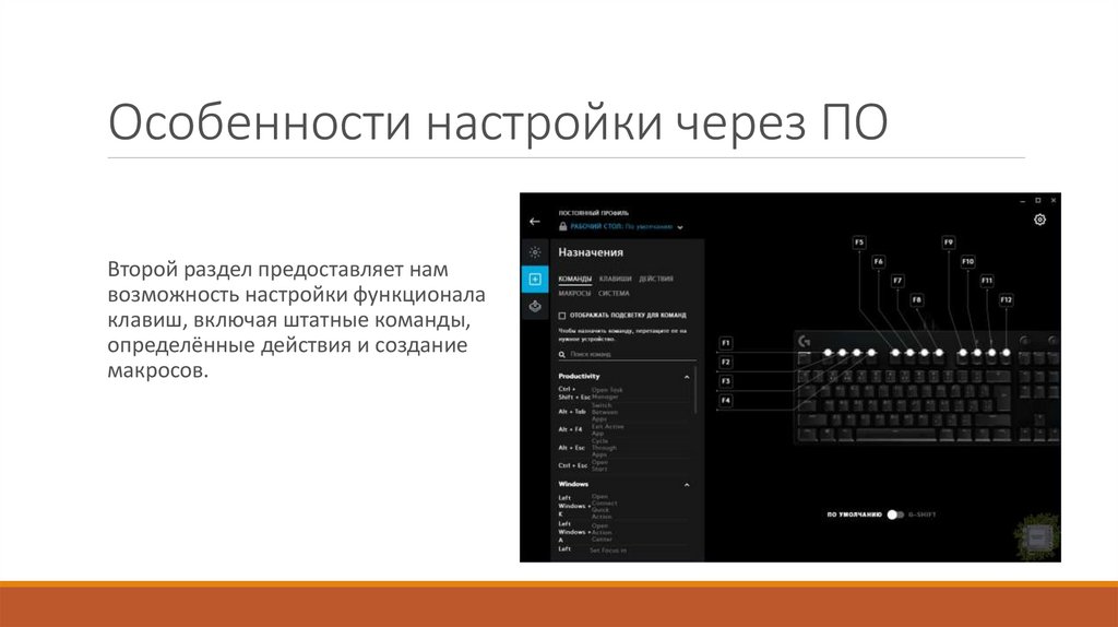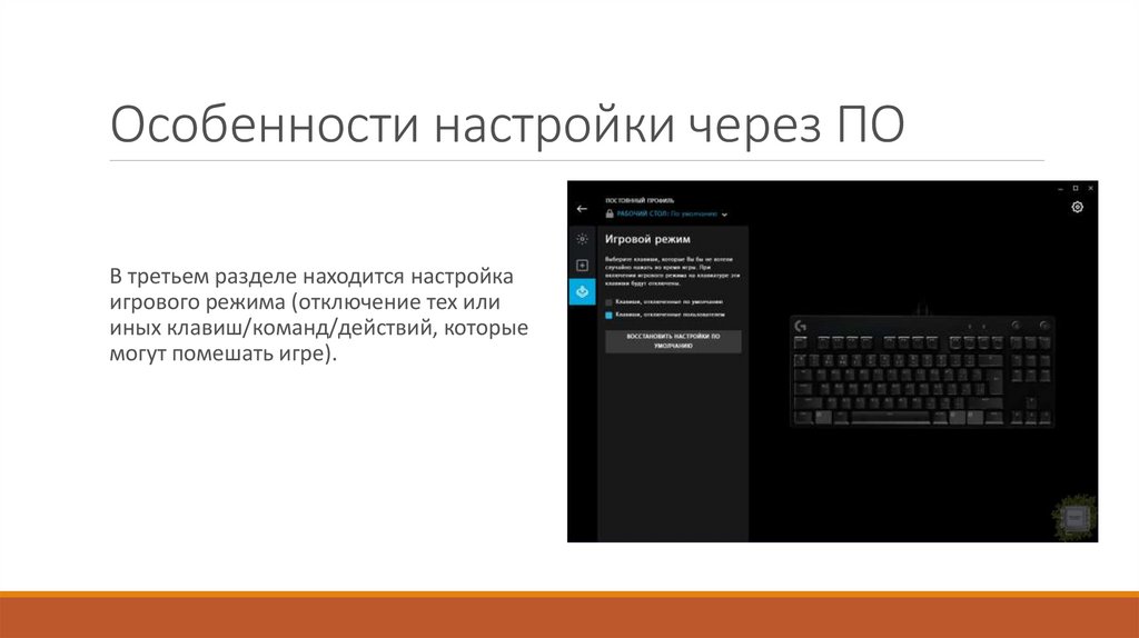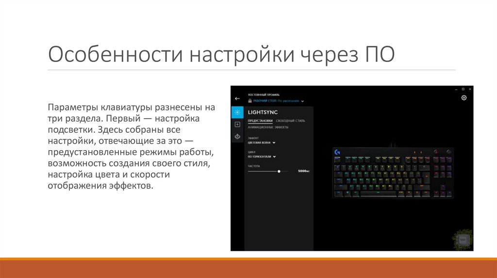 Особенности настройки через ПОПараметры клавиатуры разнесены на