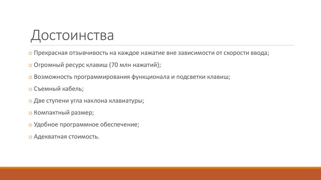 Достоинстваo Прекрасная отзывчивость на каждое нажатие вне зависимости от скорости ввода;
