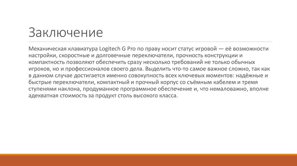 ЗаключениеМеханическая клавиатура Logitech G Pro по праву носит статус игровой — её возможности