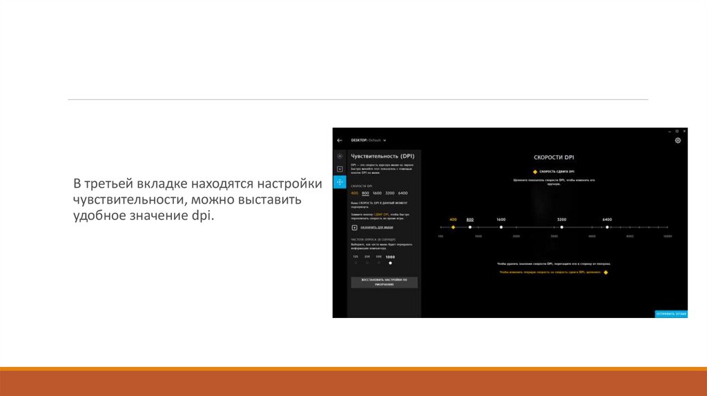 В третьей вкладке находятся настройкичувствительности, можно выставить