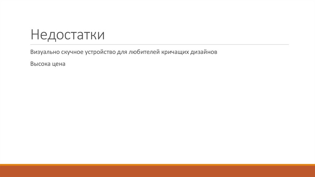 НедостаткиВизуально скучное устройство для любителей кричащих дизайнов