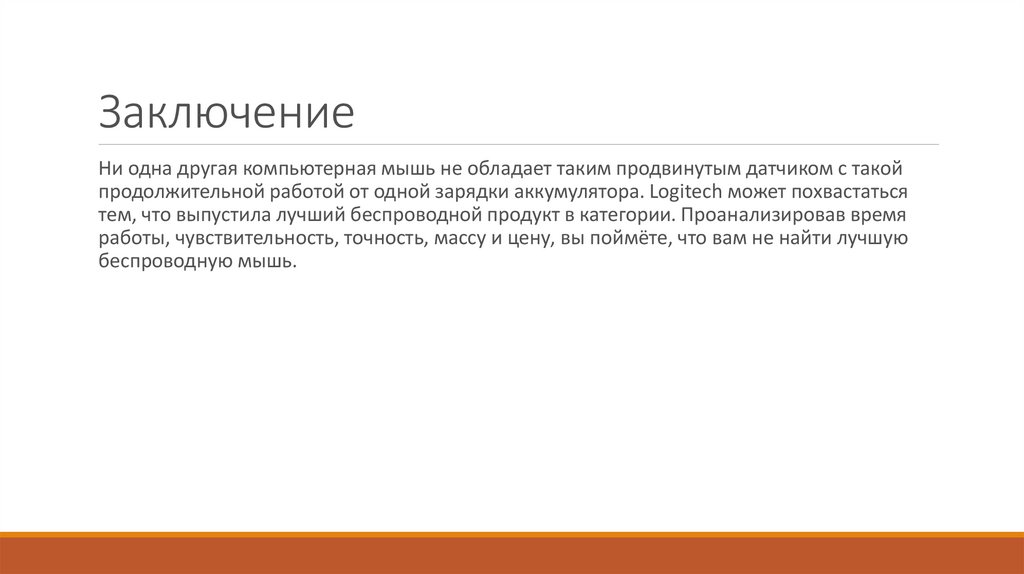ЗаключениеНи одна другая компьютерная мышь не обладает таким продвинутым датчиком с такой