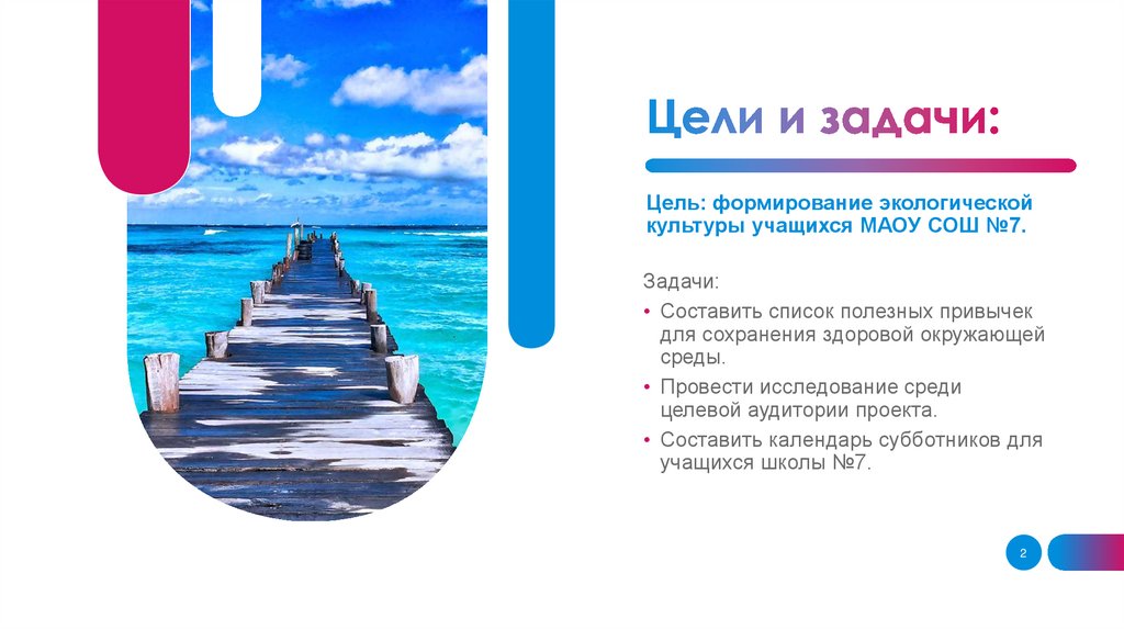 Цель: формирование экологическойкультуры учащихся МАОУ СОШ №7.