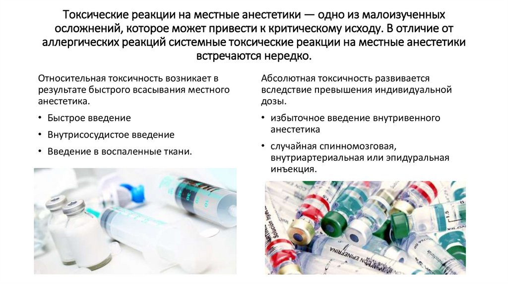 Токсические реакции на местные анестетики — одно из малоизученныхосложнений, которое может привести к критическому исходу. В отличие от