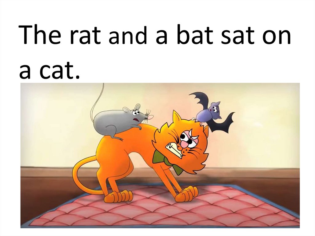 The rat and a bat sat ona cat.