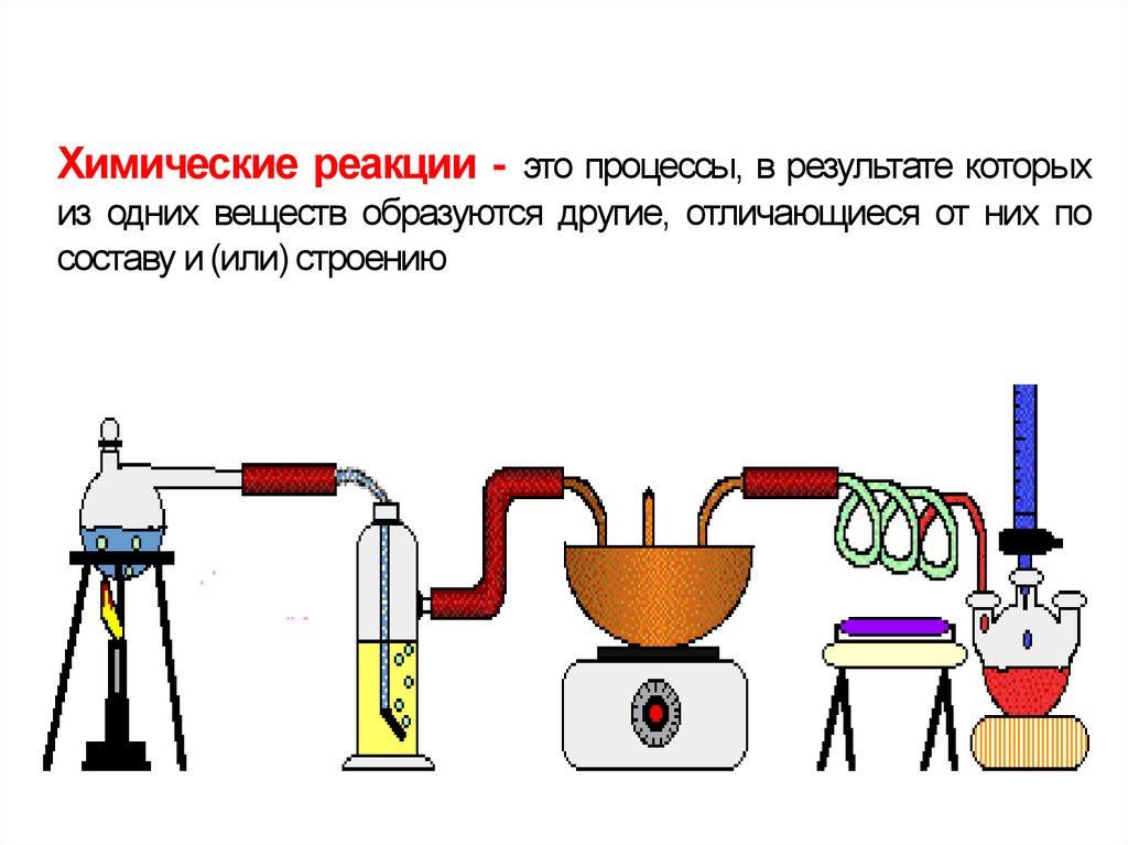 Химические реакции - это процессы, в результате которыхиз одних веществ образуются другие, отличающиеся от них по