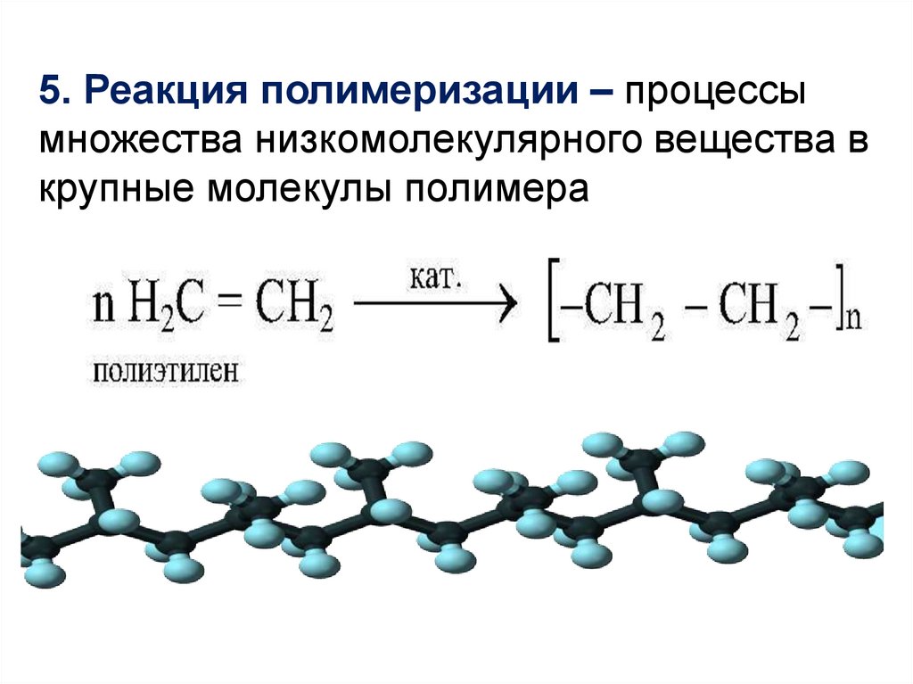5. Реакция полимеризации – процессымножества низкомолекулярного вещества в
