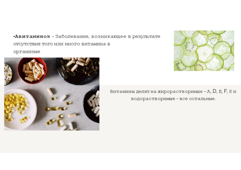 •Авитаминоз - Заболевание, возникающее в результатеотсутствия того или иного витамина в