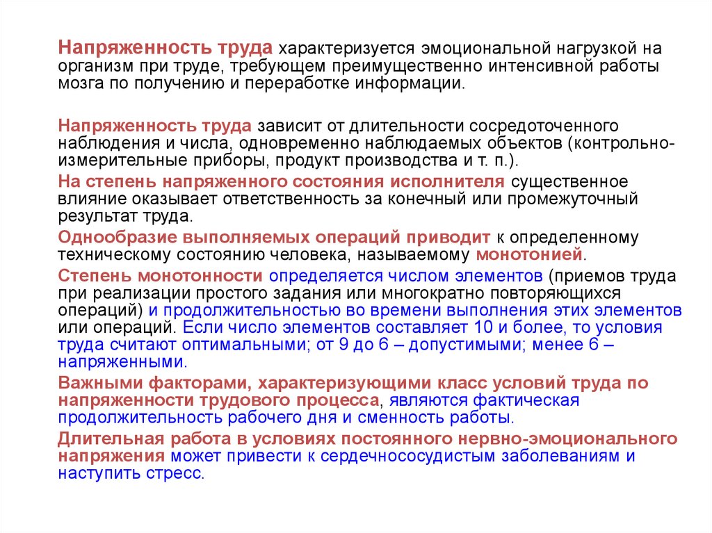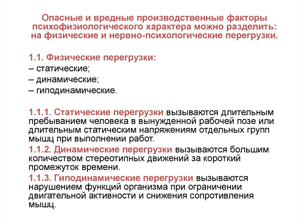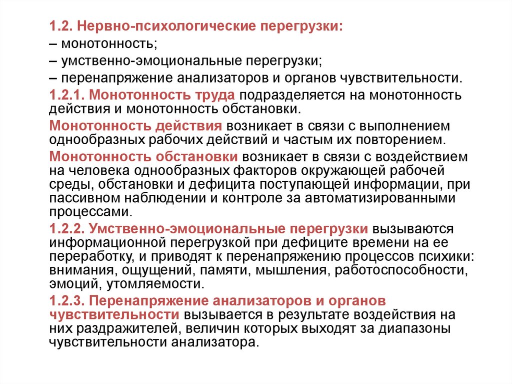 1.2. Нервно-психологические перегрузки:– монотонность;