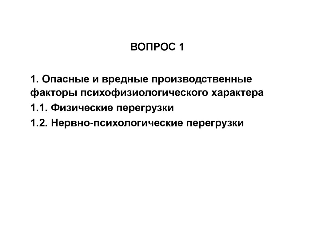 Опасные и вредные производственные факторыпсихофизиологического характера можно разделить: