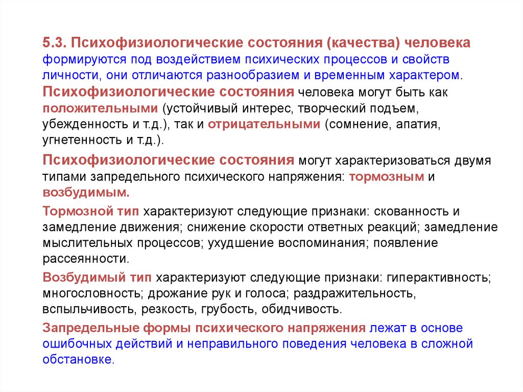 5.3. Психофизиологические состояния (качества) человекаформируются под воздействием психических процессов и свойств