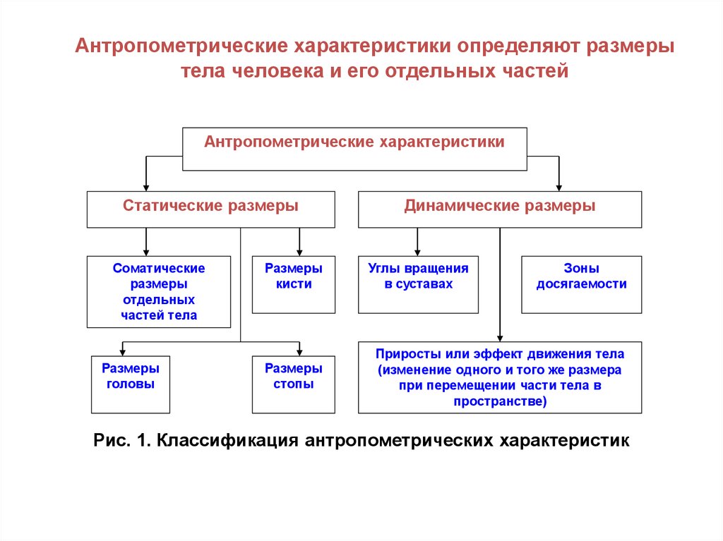 Антропометрические характеристики определяют размерытела человека и его отдельных частей