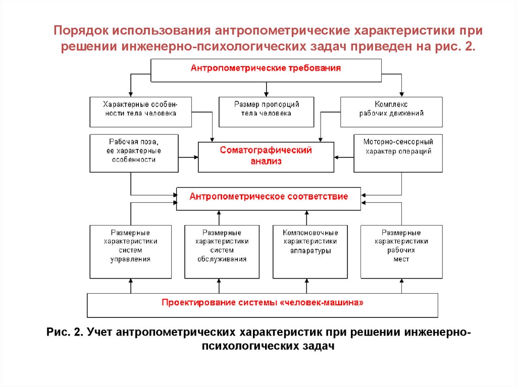 Рис. 2. Учет антропометрических характеристик при решении инженернопсихологических задач