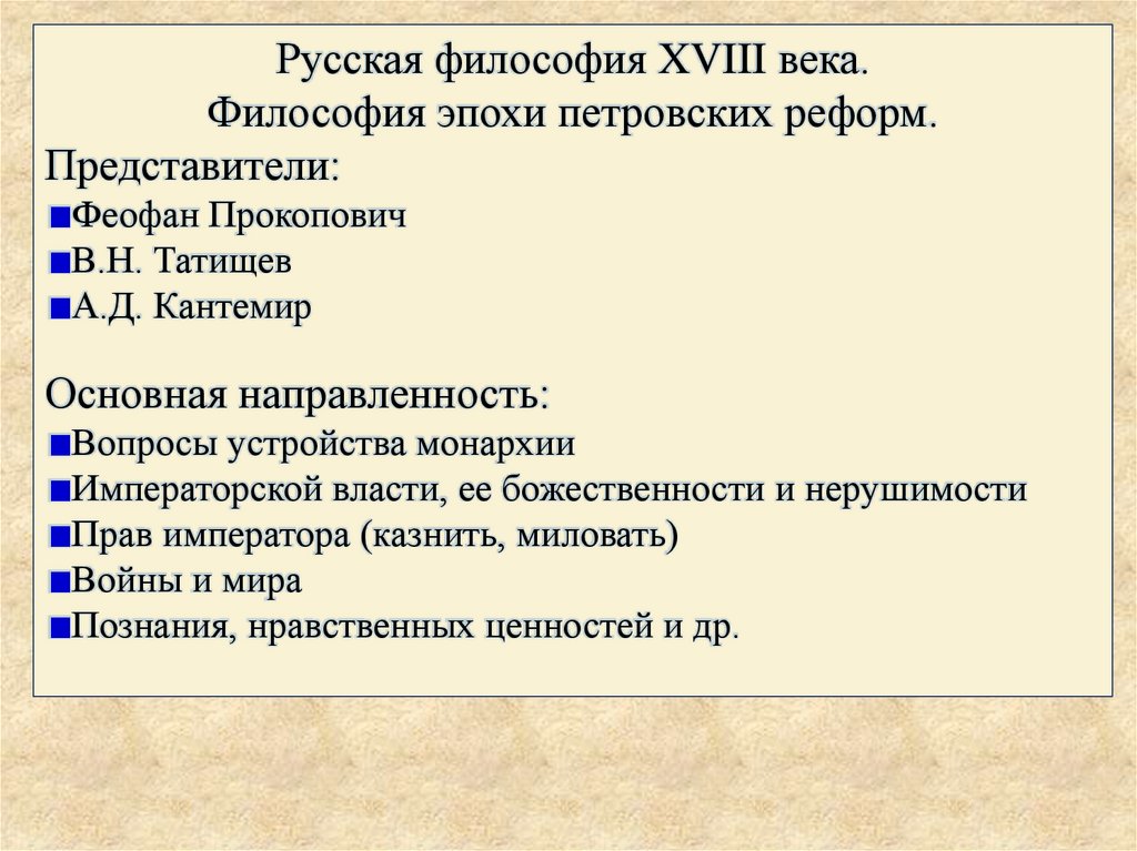 Русская философия XVIII века.Философия эпохи петровских реформ.