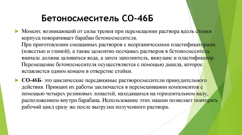Бетоносмеситель СО-46БМомент, возникающий от силы трения при перемещении раствора вдоль стенки