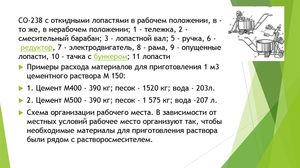 (известью и глиной), а также цементно-песчаных растворов в бетоносмеситель