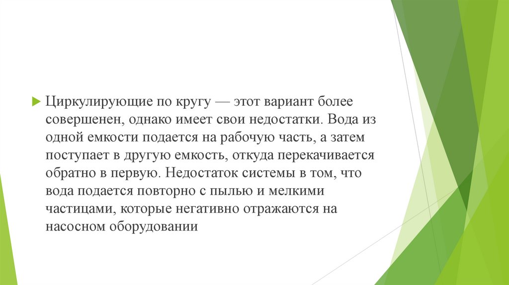 Циркулирующие по кругу — этот вариант болеесовершенен, однако имеет свои недостатки. Вода из