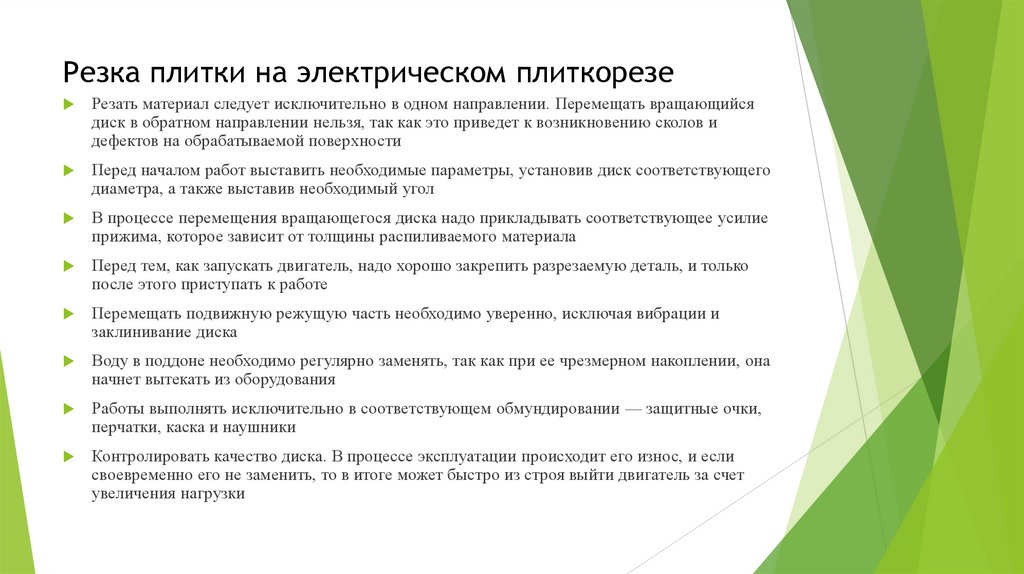 выполнять его очистку. На электрических плиткорезах