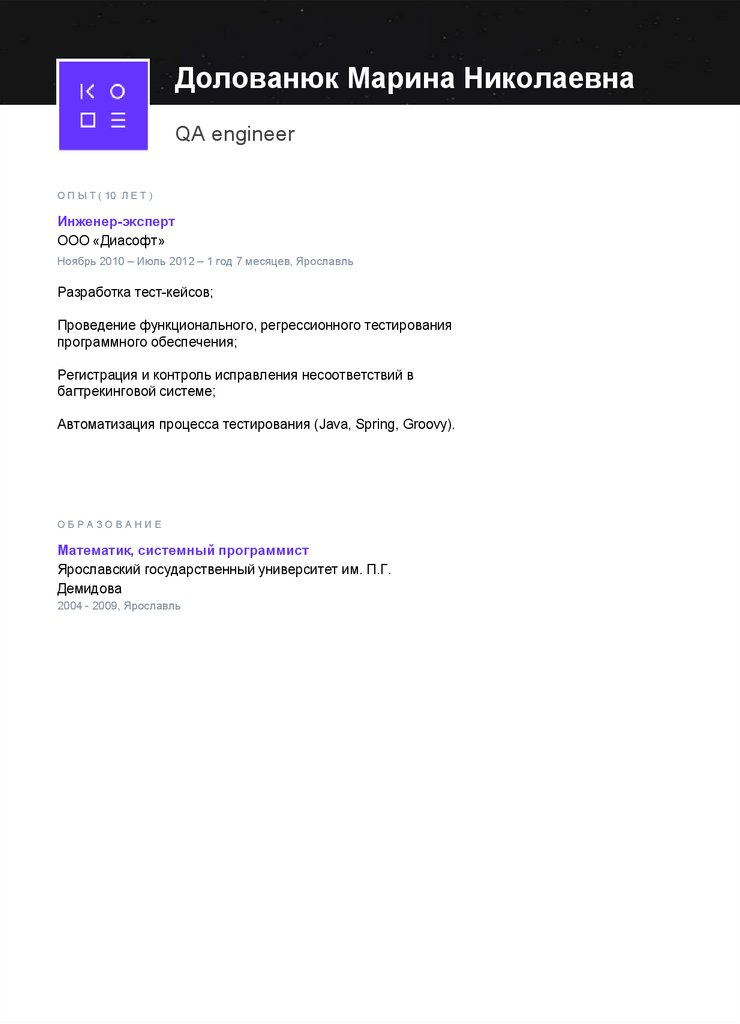 Долованюк Марина НиколаевнаQA engineer
