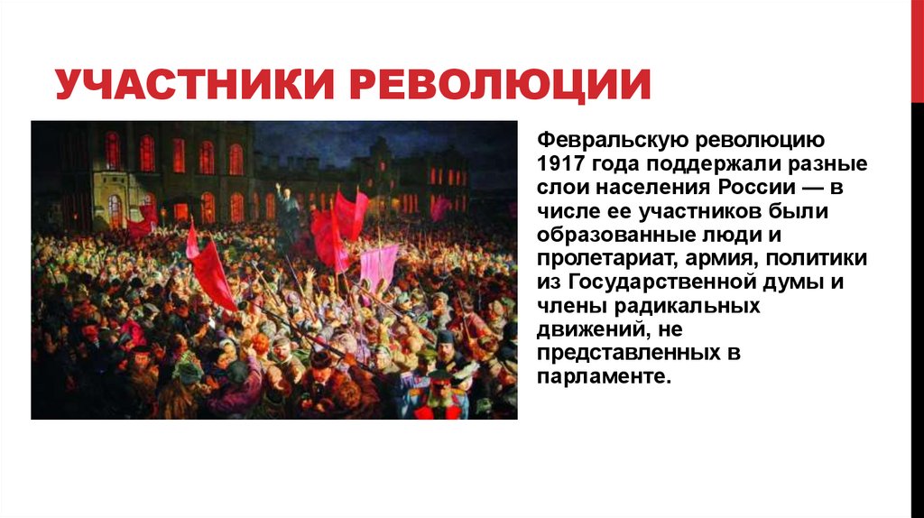 УЧАСТНИКИ РЕВОЛЮЦИИФевральскую революцию