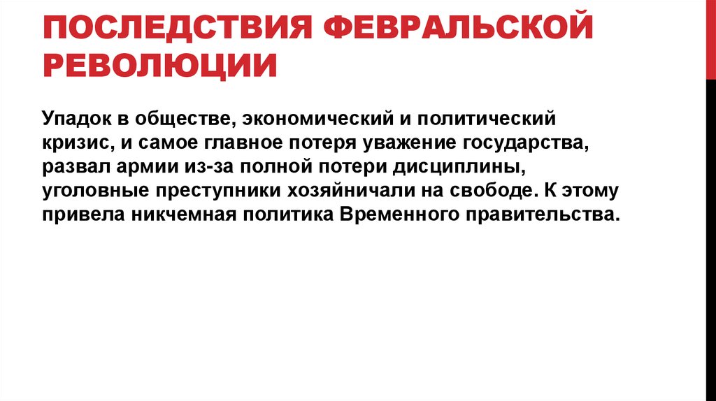 ПОСЛЕДСТВИЯ ФЕВРАЛЬСКОЙРЕВОЛЮЦИИ