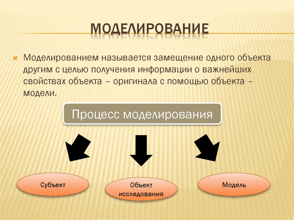 МОДЕЛИРОВАНИЕМоделированием называется замещение одного объекта