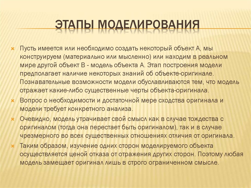 ЭТАПЫ МОДЕЛИРОВАНИЯПусть имеется или необходимо создать некоторый объект А, мы