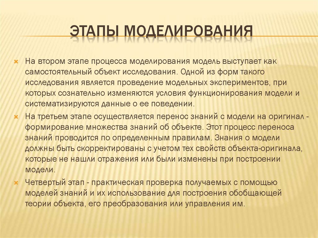 ЭТАПЫ МОДЕЛИРОВАНИЯНа втором этапе процесса моделирования модель выступает как