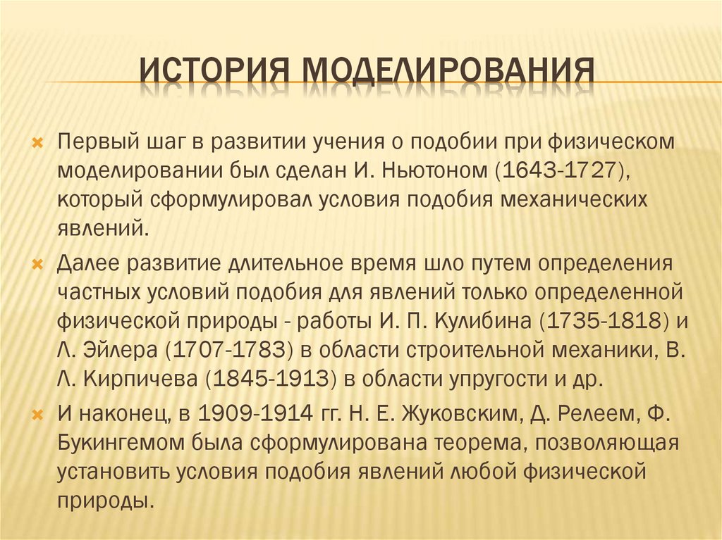 ИСТОРИЯ МОДЕЛИРОВАНИЯПервый шаг в развитии учения о подобии при физическом