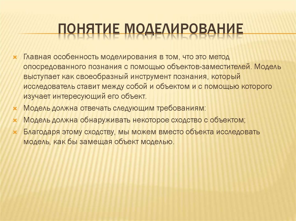 ПОНЯТИЕ МОДЕЛИРОВАНИЕГлавная особенность моделирования в том, что это метод