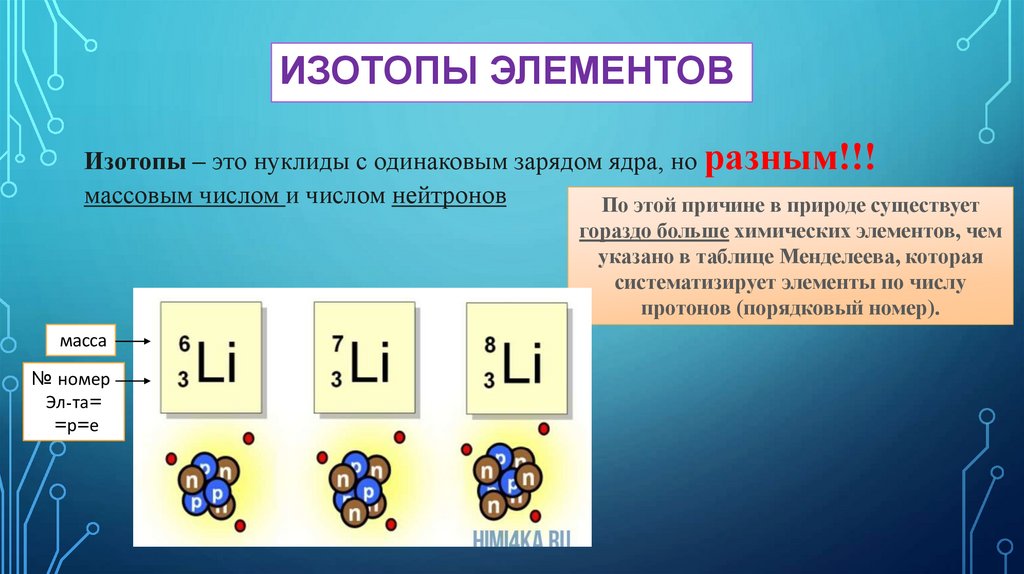 • Где у изотопа масса, а где номер?