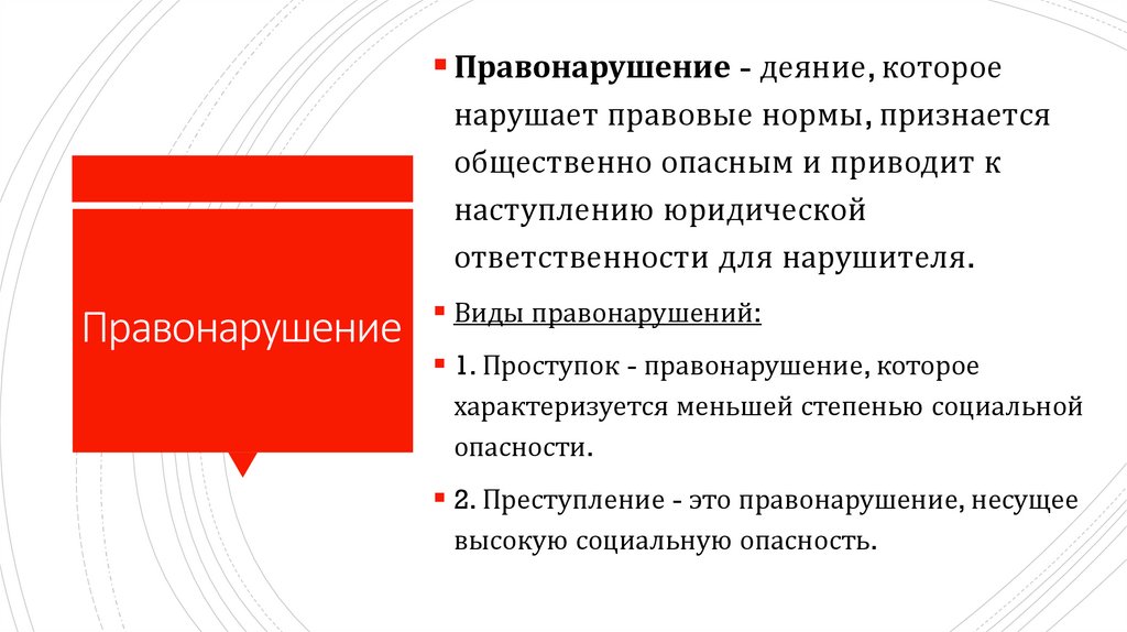 Правонарушение - деяние, котороенарушает правовые нормы, признается