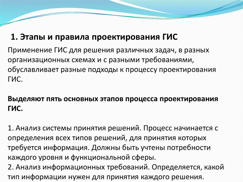1. Этапы и правила проектирования ГИСПрименение ГИС для решения различных задач, в разных